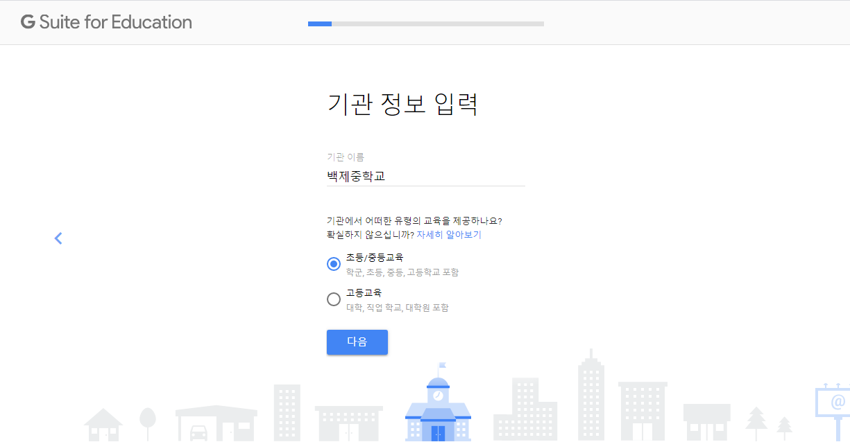 + 일단 진행하는 과정에서 알게 된것인데, 교육청에서도 G Suite For Education의 존재를 알고 있어 교육청에 문의하면 일사천리로 알아서 진행해준다네요. 그러나 교육청 도메인을 쓰게 되기에 저희 같은 경우는 '닉네임@baekje.cnems.kr' 같은 도메인을 사용하게 됩니다.