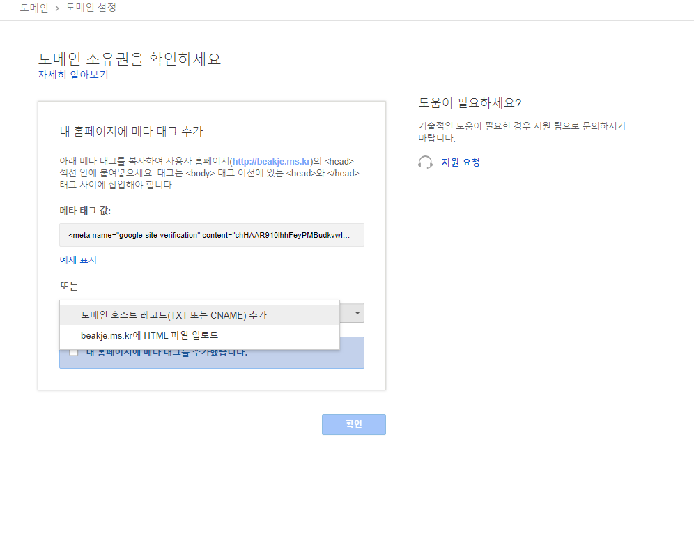 그리고 구글로 돌아와서 확인버튼을 누르면 도메인 인증이 완료 되었다고 합니다.