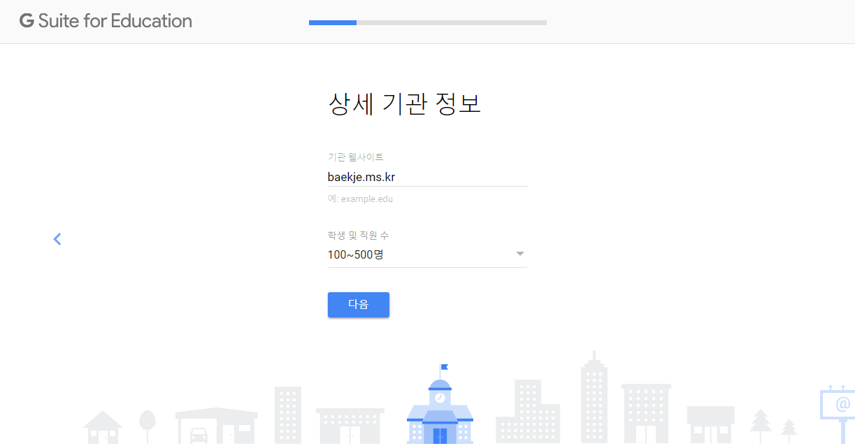 방금전에 구매한 도메인을 입력해주시고, 학생 및 직원수를 골라주세요