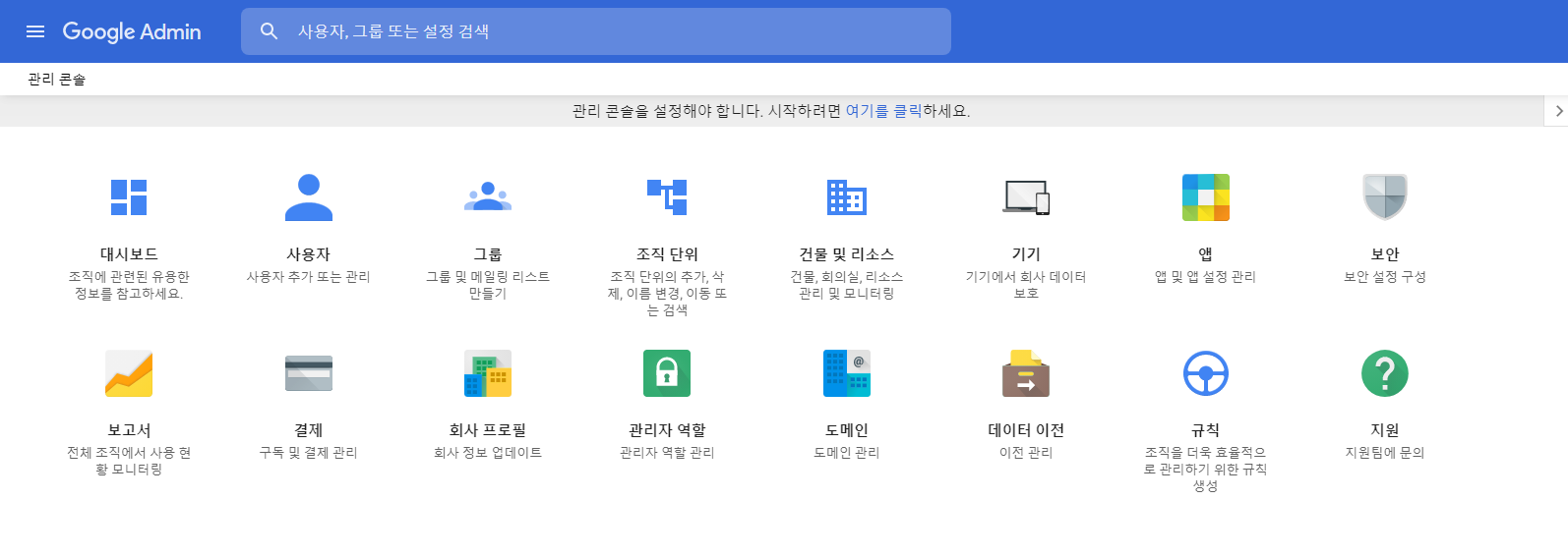 설정페이지로 이동하고 잠시 기다리면 위에 관리 콘솔을 설정해야 한다고 합니다.