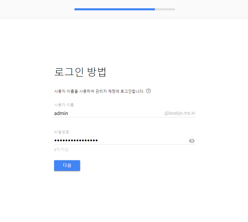 관리자 계정으로 로그인할 이름과 비밀번호를 써주시면 됩니다.