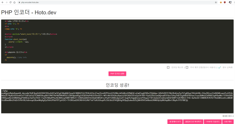 php 뿐만이 아닌 html js가 혼합된 소스도 인코딩합니다.